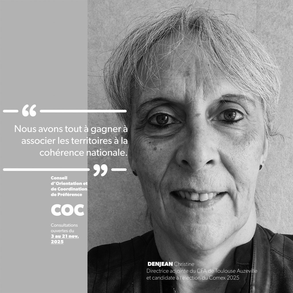 Christine DENJEAN, directrice adjointe du CFA de Toulouse Auzeville et candidate à l’élection du Comex 2025 : « Nous avons tout à gagner à associer les territoires à la cohérence nationale. » Mobilisez-vous, votez !